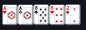 One pair: Dua kartu dengan peringkat sama dan tiga kartu tambahan yang tidak berkaitan.