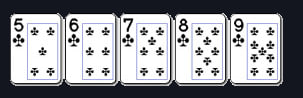Straight Flush: Lima kartu dalam urutan angka; semua dalam jenis identik.