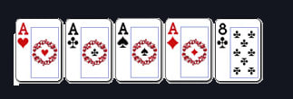 Saat seri: Four of a kind tertinggi, menang. Dalam permainan kartu bersama saat pemain memiliki four of a kind yang sama, kartu tambahan (‘kicker’) kelima yang tertinggi, menang.